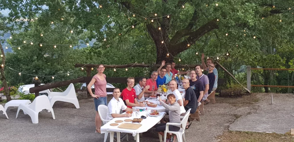 Ce sera donc un lieu d’accueil modulable, avec le confort d’un hôtel, la convivialité d’un gîte, et la chaleur d’une chambre d’hôte. La capacité d’accueil passera de 15 à 24 personnes et de 3 chambres et 2 dortoirs à 7 chambres. Nous accueillerons toujours les marcheurs, cyclistes et cavaliers sur les chemins d’itinérance aux alentours à qui nous proposerons la demi-pension et le pique-nique à emporter. Mais nous nous ouvrirons également à une clientèle de groupe : familles, amis, associations, entreprises, etc… Que ce soit pour des cousinades, des mariages, des stages bien-être (yoga, qi gong, tai-chi, pilates…), des stages artistiques (danse, musique, peinture…), des séjours sportifs (randonnée, trail, cyclisme, VTT, équitation, parapente…), ou des séminaires de teambuilding. Pour les locaux, nous continuerons à organiser quelques évènements ouverts à tous durant l’année et une activité de bar-snacking aura lieu durant la belle-saison de mi-juin à mi-septembre, entre 11h et 18h.