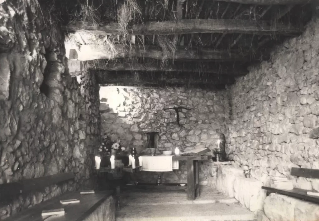En 1966, Louis Revel – alors jeune prêtre à Chambéry – hérite de cette grange à la mort de son père. La ferme revient à son frère aîné ; lui reçoit « ce lieu vide, mais plein de potentiel ». Avec quelques amis de la paroisse de Maché, il décide d’y consacrer ses week-ends. Ensemble, ils retapent la vieille bâtisse pour en faire une petite chapelle et une salle de réunion.