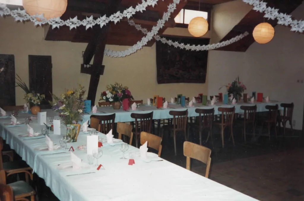 De 1974 à 1995, c’est un lieu d’accueil pour des groupes qui veulent se réunir et un restaurant (avec une licence IV). Il y aura des réunions de famille, des mariages, des rencontres bibliques, des groupes de prêtres, des groupes d’amis, des réunions syndicales, sociales et spirituelles. La convivialité est le maître mot, les conversations sont animées et les repas gargantuesques durent longtemps, mais les enfants ont toujours le droit de sortir de table et d’aller jouer dehors, en pleine nature !
