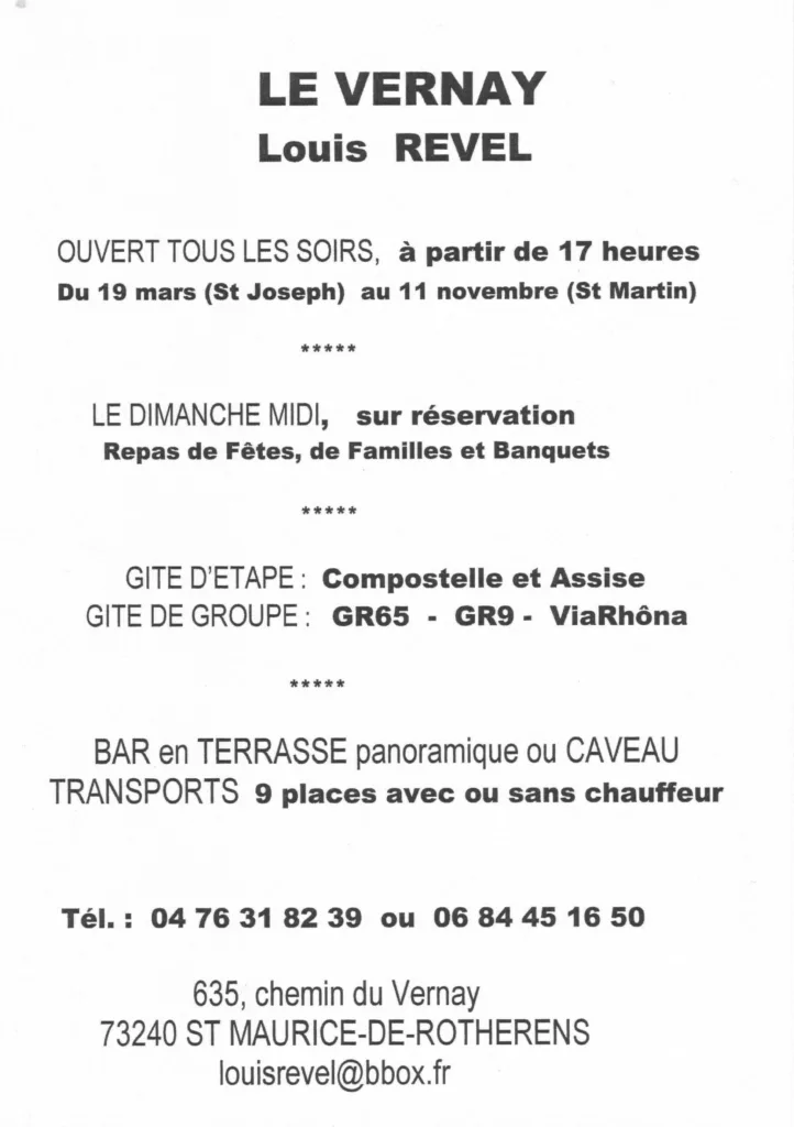 Louis a trouvé son activité idéale, elle lui permet de combiner son sens de l’accueil, sa foi et sa vocation à rassembler et à intéresser les gens. De plus il parle allemand, ce qui lui vaut d’être cité dans les guides allemands comme une étape incontournable ! C’est vrai que Le Vernay et Louis sont connus sur le Chemin (si on se réfère aux nombreux livres d’or, à toutes les cartes postales reçues des Pèlerins, ainsi qu’aux acteurs de Compostelle et du tourisme du territoire).