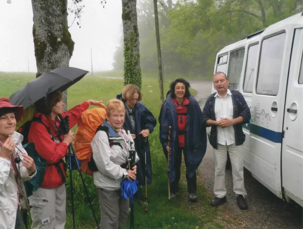 Nous ouvrons comme chaque année le 20 mars et nous le tenons toute la saison, continuant en quelque sorte notre voyage, mais de manière immobile : ce sont des gens du monde entier qui viennent à nous et avec qui nous conversons en anglais (essentiellement des Suisses, des Allemands et des Autrichiens, mais aussi des Australiens, des Danois, des Canadiens, des Anglais, et bien sûr quelques Français aussi !). En plus des Pèlerins de Compostelle, ce sont désormais aussi des Pèlerins sur le Chemin de Saint François d’Assise (reliant Vezelay à Assise en Italie) et quelques VTTistes sur les Chemins du Soleil (reliant Thonon-les-Bains à Nice) qui s’arrêtent au Vernay ; le GR9 qu’empruntent ces 2 chemins passe à 150m du gîte.